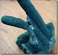 Ein Stück Malachitgestein aus einer Miene wurde an einen Edelsteinhändler gesendet, doch es war zerbrochen. Innen im Gestein fand man einen Kupferdraht, was darauf hindeutete, dass dieses Gestein von Menschen “gezüchtet” wurde.