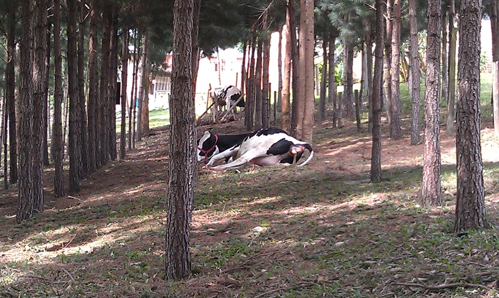 Hier auf dem Gelände hatten wir bis vor kurzem eine Kuh und zwei Ochsen.